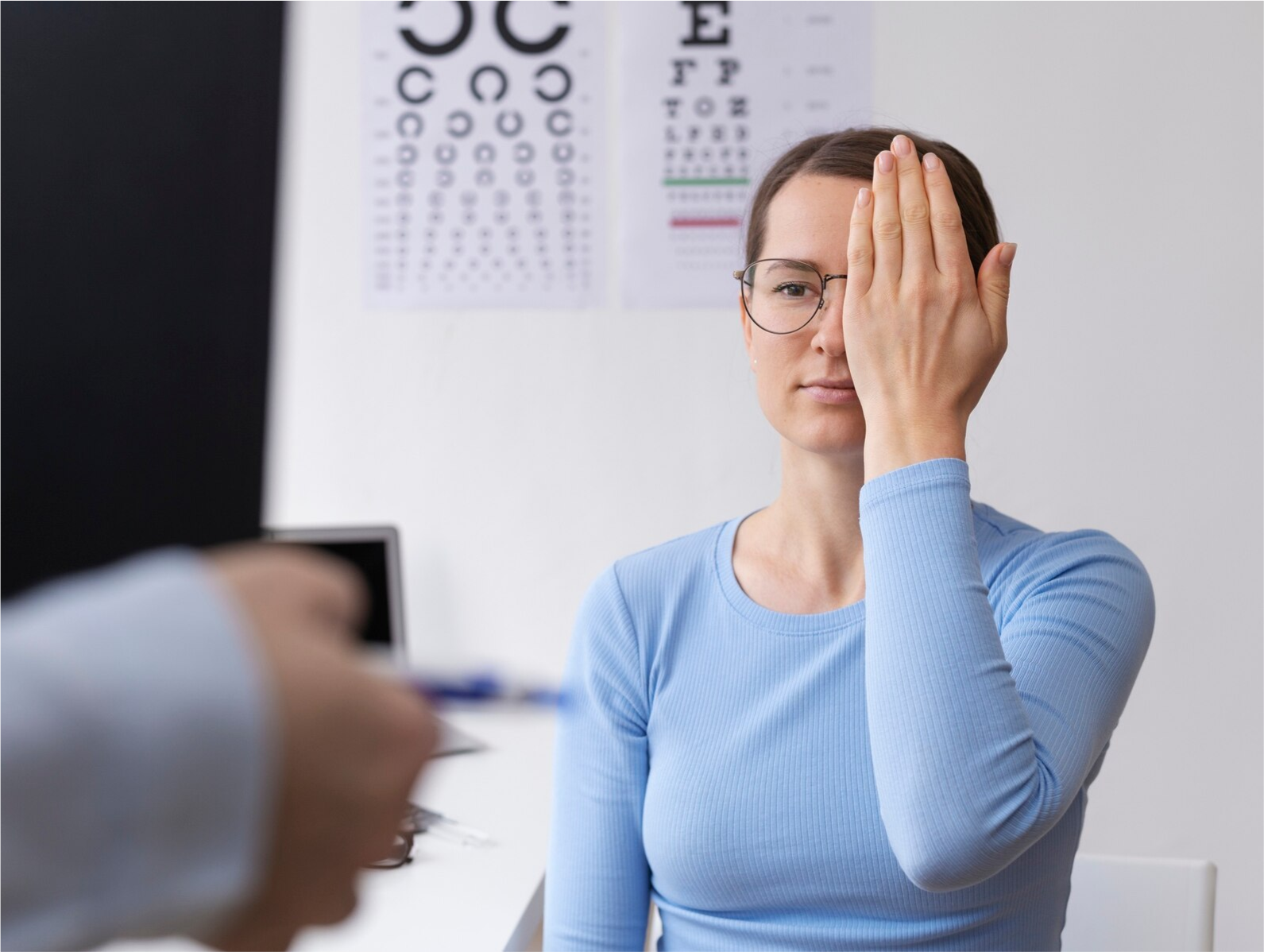 Solicitado por los peritos como AV, sin y con corrección óptica.